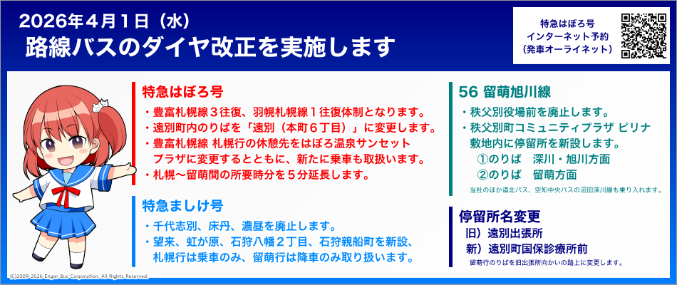 また、特急はぼろ号の発着を「遠別(本町6丁目)」に変更します。