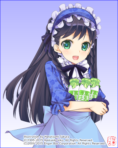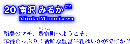 今回も青を基調としたカントリードレス姿で、ふるさとの牛乳のPR