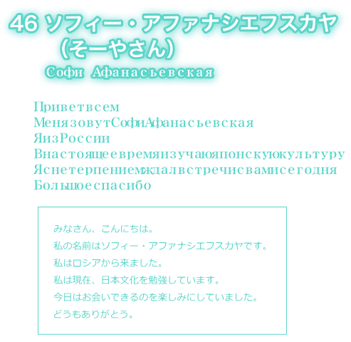 ロシア出身の25歳。本名は、「ソフィー・アファナシエフスカヤ」ですが、